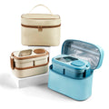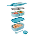 Set de lonchera y portaviandas. Incluye contenedor de alimentos con triple compartimento, capacidad total de 1.6 litros. Su tapa cuenta con asas plegables que facilitan su transporte, ademas, una practica cuchara tenedor y un mini recipiente para aderezos. Su lonchera es el complemento perfecto, fabricada en poliester con interior de aluminio. El compartimento principal, cuenta con un cierre seguro y un bolsillo interior de malla, para guardar objetos pequenos. Apto para microondas o lavavajillas. Capacidad para 6 latas.