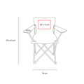 Silla plegable de facil armado con reposabrazos, porta vasos de malla y funda con jareta y correa.