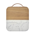 Tabla de cocina de marmol con madera y asa metalica color oro rosado. Incluye caja individual. La madera es un producto natural el cual puede presentar variaciones en tonalidades y vetas.
