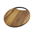 Tabla redonda para cocina con asa metalica en color negro. Incluye caja individual. La madera es un producto natural el cual puede presentar variaciones en tonalidades y vetas.