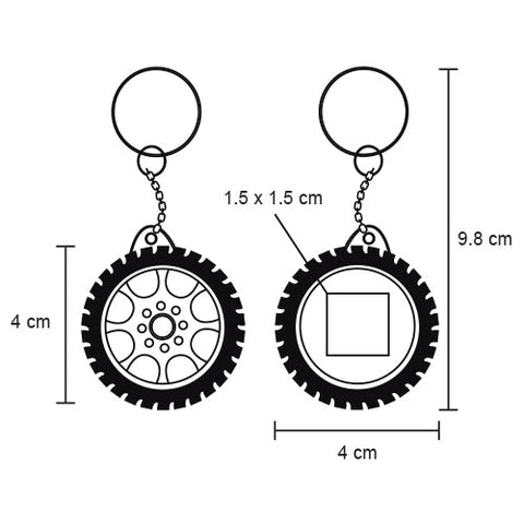 Llavero flexómetro en forma de llanta, 1 metro de longitud.