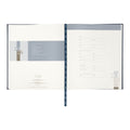Agenda semanal con 80 hojas. Contiene datos personales, calendarios 2025-2026-2027, planeador 2026, presupuesto de gastos, seguimiento de nuevos habitos, organizador de tareas, planeador de proyecto y dias festivos. Incluye caja individual.