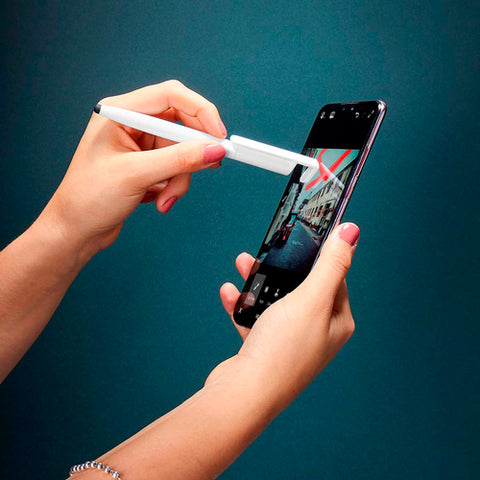 Boligrafo con touch screen, base para smartphone y limpiador de pantalla. Mecanismo twist.