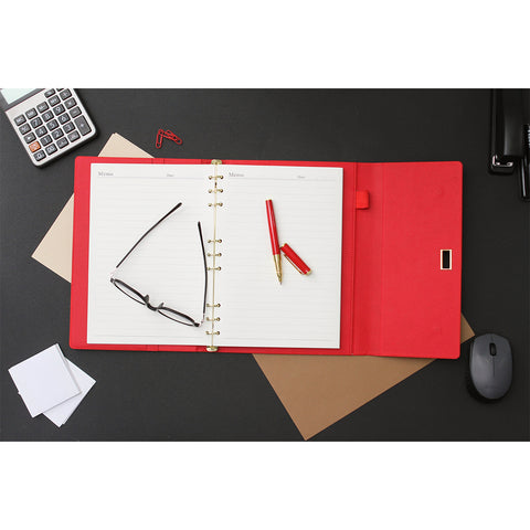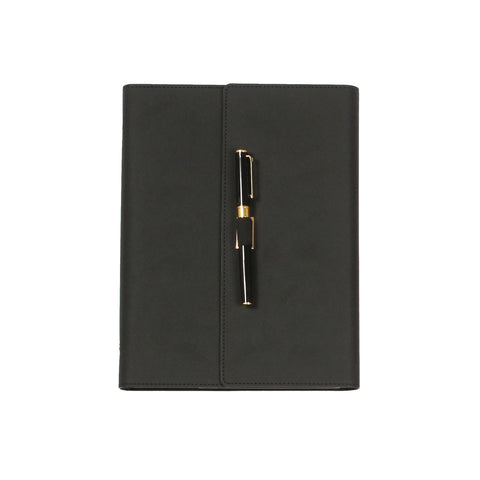 Carpeta ejecutiva, con cubierta de cuero sintético (PU), tamaño B5, 80 páginas. Incluye bolígrafo con barril metálico.