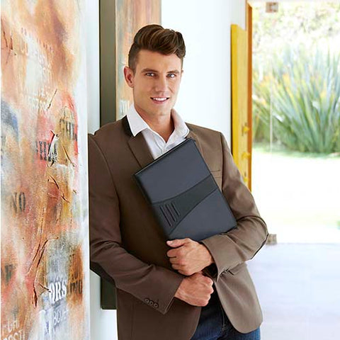 Incluye block de raya tamano A4 con 20 hojas, elastico para boligrafo, compartimento para documentos y tarjetas. No incluye boligrafo.