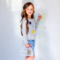 Estuche con 1 sacapuntas, 6 crayones y 6 colores.