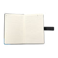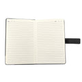 Libreta con 80 hojas de raya. Incluye elastico para boligrafo, broche imantado para cerrar y placa para grabado.