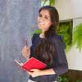 Libreta con 80 hojas de raya. Incluye separador de hojas, elastico para cerrar y boligrafo de plastico.