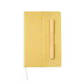 Libreta con 96 hojas a raya. Pasta plegable que funciona como base para smartphone. Cubierta rigida de curpiel que incluye un boligrafo desmontable y liston separador de hojas. Con este practico set, estaras siempre listo para plasmar tus ideas en cualquier momento.