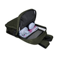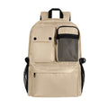 Mochila con amplia bolsa principal con compartimento interno para laptop de hasta 15” y dos bolsas internas. Cuenta con 3 bolsillos frontales, dos de ellos con cierre y uno con sistema de botones. Tiene un par de ajustadores expandibles y laterales de malla.