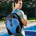 Bolsa principal y bolsa frontal con cierre, organizador de documentos y gancho para llaves, aditamento especial para audifonos, bolsas laterales de red, tirantes acolchados y ajustables. Espalda acojinada. Cuenta con asa de agarre superior acojinada.