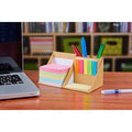 Incluye porta plumas, 500 notas de diferentes colores, 25 notas adheribles amarillas y 5 banderas adheribles plastificadas de diferentes de colores.