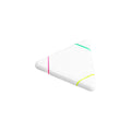 Figura de plástico en forma de triángulo en color blanco con 3 marca textos de colores. Te ayudarán a resaltar y organizar la información clave de una manera visualmente atractiva.