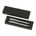 Juego de bolígrafo con tinta negra y lápiz tipo bolígrafo con punta infinita, ambos fabricados en aluminio.