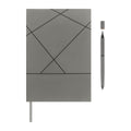 Elegante y original set de regalo que consta de, libreta con 100 hojas a rayas, cubierta rígida de curpiel y listón separador. Como complemento, cuenta con un bolígrafo de metal con terminado mate, con punta clásica y la funcionalidad de un lápiz infinito en la parte superior. Incluye caja de regalo con cierre imantado y asas de fino material, que le dan un toque más sofisticado.