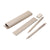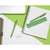 Set escolar fabricado 60% plástico ABS y 40% fibra de trigo. Incluye regla de 15 cm, lapicero, bolígrafo con tinta negra y goma; todo en un estuche fabricado en el mismo material ecológico.