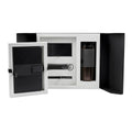 Medidas: 30 x 40 x 10 cm Caja / 7.6 x 17.7 cm Termo / 15 x 21 cm Libreta / 1.2 x 13.8 cm Bolígrafo / 6.8 x 13.7 cm Power Bank / 2.3 x 11 cm Llavero