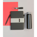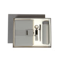 Set ejecutivo 4 en 1. Incluye libreta de 100 hojas de 80 g, bolígrafo tipo ball pen de acero inoxidable con tinta de escritura en color negro, llavero fabricado en PU y acero y termo de 350 ml fabricado en acero. Estilo y practicidad para el día a día. ¡El detalle perfecto para tus clientes o equipo!"