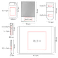 Medidas: 41.5 x 28 x 9.5 cm Caja / 6.5 x 19 cm Termo / 14.5 x 21 cm Libreta / 1.2 x 14 cm Bolígrafo / 6.8 x 13.7 cm Power Bank / 2.3 x 11 cm Llavero