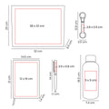 Medidas: 32 x 25 x 8.5 cm Caja / 14.6 x 21 x 1.4 cm Libreta / 1.1 x 14 x 1.6 cm Bolígrafo / 3.5 x 13.8 cm Llavero / 7.4 x 18.5 x 7.4 cm Termo