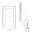 Medidas: 9.7 x 17 cm Caja / 1 x 13.5 cm Bolígrafo / 4.5 x 9.8 cm Llavero