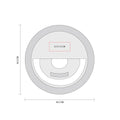 Aro de luz de 28 LEDs con clip ajustable. Se puede montar en smartphones o computadoras para mejorar las fotografias, videos o videollamadas. Cuenta con 3 diferentes intensidades de luz. Incluye bateria recargable y cable auxiliar micro USB.