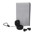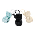 Audifonos bluetooth con base recargable. Estuche ultra compacto con asa de silicon para llevarlo a todos lados. Controles integrados touch para llamadas, volumen y reproduccion de audio. Reproduccion de musica 3 a 4 hrs aproximadamente. Rango de conexion de 10 metros. Bateria de 28 mAh en los auriculares y 180 mAh en el estuche de carga. Incluye cable cargador USB, estuche de carga con conexion tipo C y caja individual.