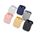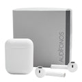 Audifonos bluetooth con terminado rubber y estuche recargable. Control touch para reproduccion de musica y funcion de llamada. Reproduccion de musica de 2 a 3 horas aproximadamente. Rango de conexion de 10 metros. Bateria de 30 mAh (audifonos) y 200 mAh (estuche). Incluye estuche con puerto lightning y cable auxiliar.