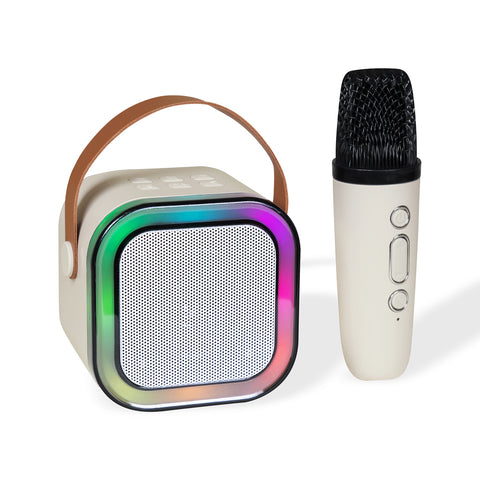 Bocina con tecnologia bluetooth 5.3. Potencia 5 W. Bateria recargable con capacidad de 800 mAh que otorga un tiempo de reproduccion de 3 a 4 horas. Alcance de conexion de 10 metros. Incluye marco de luz LED con boton independiente para cambiar o ajustar el efecto o color. Ademas, agrega un microfono que se sincroniza automaticamente a la bocina, lo que te permitira cantar tus canciones favoritas y divertirte ya que se puede modificar la agudeza de las voces. Puerto de conexion tipo C y USB, conexion para cable auxiliar 3.5 y ranura para tarjeta TF. Incluye cable con conector tipo C y caja individual.
