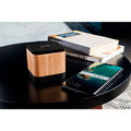 Bocina bluetooth con bateria recargable. Reproduccion de musica de 2 hrs aproximadamente. Controles integrados de llamadas, volumen y reproduccion de audio. Rango de conexion de 10 metros. La base al estar conectada, funciona como cargador inalambrico de smartphone. Incluye cable cargador USB.