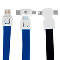 Cable cargador con correa. Incluye conectores USB, tipo C y conector 2 en 1 micro USB/8 pin.