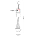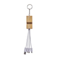 Cable cargador con llavero y soporte para smartphone de bambu. Compatible con USB, micro USB, tipo C y lightning (8 pines). Salida de 2A. No permite transferencia de datos. El bambu es un producto natural el cual puede presentar variaciones en tonalidades y vetas.