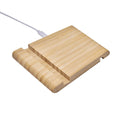 Cargador inalambrico multifuncion con soporte para smartphones y tablets. Incluye LED indicador de carga en proceso y cable con entrada USB y micro USB. Potencia de carga de 5W. Incluye cable cargador. El bambu es un producto natural el cual puede presentar variaciones en tonalidades y vetas.