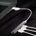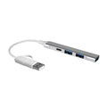 Concentrador acabado metalico con 3 puertos USB y 1 puerto tipo C. Soporta transferencia de datos. Cable de conexion con USB y tipo C.