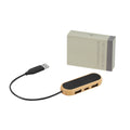 Concentrador con 2 puertos USB 2.0 y 1 puerto tipo C. Soporta transferencia de datos. Cable de conexion con USB y tipo C. El bambu es un producto natural el cual puede presentar variaciones en tonalidades y vetas.