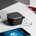 Bocina bluetooth con bateria recargable. Reproduccion de musica de 3 hrs aproximadamente. Incluye cable cargador USB y gancho para transportarlo facilmente.