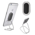 Soporte para smartphone o tablet con diseño plegable de dos brazos, ideal para ajustar en diferentes posiciones.