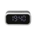 Bocina Bluetooth portátil con reloj digital, radio FM y micrófono para contestador de llamadas, cuenta con entrada para Aux, TF y cable de carga.