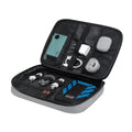 Estuche para llevar cargadores, cables y otros accesorios electronicos de manera segura, evitando enredos y danos. Incluye un bolsillo frontal con cierre y asa lateral para transportar facilmente. En su interior, agrega dos bolsillos de malla con cierre, 5 compartimentos de malla y dos bandas elasticas para mantener tus accesorios fijos en todo momento. Su diseno elegante y su material curpiel, lo hacen perfecto para el uso diario, ya sea en el trabajo, de viaje o en casa.