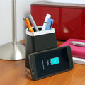 Porta lápices con cargador wireless, fabricado en ABS con base para porta celular. Cuenta con compartimentos de almacenamiento para tus lápices, bolígrafos y otros utensilios de escritura. Capacidad de carga inalámbrica, con una potencia de carga de 10 W.