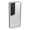 Bateria auxiliar para smartphone, capacidad 10,000 mAh. Cuenta con una salida USB, entrada micro USB y tipo C. Display para mostrar el nivel de bateria. Incluye cable cargador compatible con USB y micro USB.