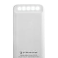 Bateria auxiliar para smartphone con linterna LED y funcion de carga inalambrica. Capacidad 8,000 mAh, con 4 LEDs indicadores de carga. Cuenta con 2 salidas USB, entrada micro USB y tipo C. Potencia de carga inalambrica de 5W. Incluye cable cargador compatible con USB y micro USB.
