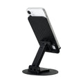 Soporte universal con diseno plegable. Incluye una base giratoria de 360° que permite un facil ajuste y personalizacion, lo que garantiza un angulo de vision comodo para el usuario. Desplegable a una altura maxima de 20 cm. Incluye caja individual.