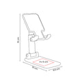 Soporte plegable. Soporte y base con material antiderrapante. Altura e inclinacion ajustable. Desplegable a una altura maxima de 16 cm.