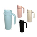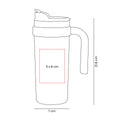 Doble pared. Cerrado al vacio. Pared interna y externa de acero inoxidable. Tapa de plastico con cierre de rosca y sobretapa de push. Asa de plastico. Mantiene temperatura caliente 6 hrs y fria 12 hrs. Incluye caja individual.