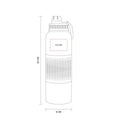 Doble pared. Cerrado al vacio. Pared interna y externa acero inoxidable. Cuenta con manga de silicon. Terminado tipo rugoso. Tapa de plastico con doble boquilla y asa. Mantiene temperatura caliente 6 hrs y temperatura fria 8 hrs aproximadamente. Incluye caja individual.