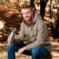 Doble pared. Cerrado al vacio. Pared interna y externa acero inoxidable. Tapa con asa de plastico. Mantiene temperatura caliente 6 hrs y temperatura fria 8 hrs aproximadamente. Incluye caja individual.