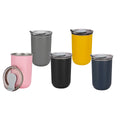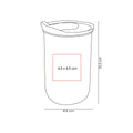 Doble pared. Pared interna de acero inoxidable y externa de plastico. Tapa de plastico con sistema push y sobretapa de silicon movible. Incluye caja individual.
