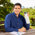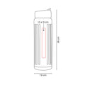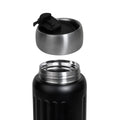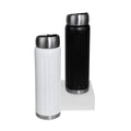 Doble pared. Cerrado al vacio. Pared interna y externa acero inoxidable. Tapa metalica con sistema de rosca. Sobre tapa de plastico con sistema de push. Terminado rugoso. Mantiene temperatura caliente 6 hrs y temperatura fria 12 hrs aproximadamente. Incluye caja individual