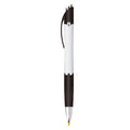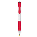 Bolígrafo de plástico de punto medio (1 mm), con grip de goma, clip y mecanismo de click.